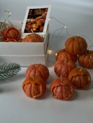 Свічка «Чищена мандаринка» — це оригінальна ароматична свічка, що нагадує справжній очищений мандарин. Її святковий аромат сповнює простір нотами цитрусу та тепла, створюючи затишну атмосферу. Виготовлена вручну з натурального воску , вона дбайливо запакована в прозорий пакетик, як на фото, та доповнена міні листівкою.