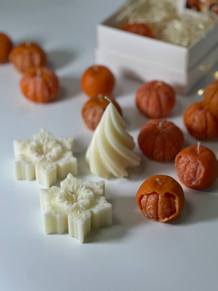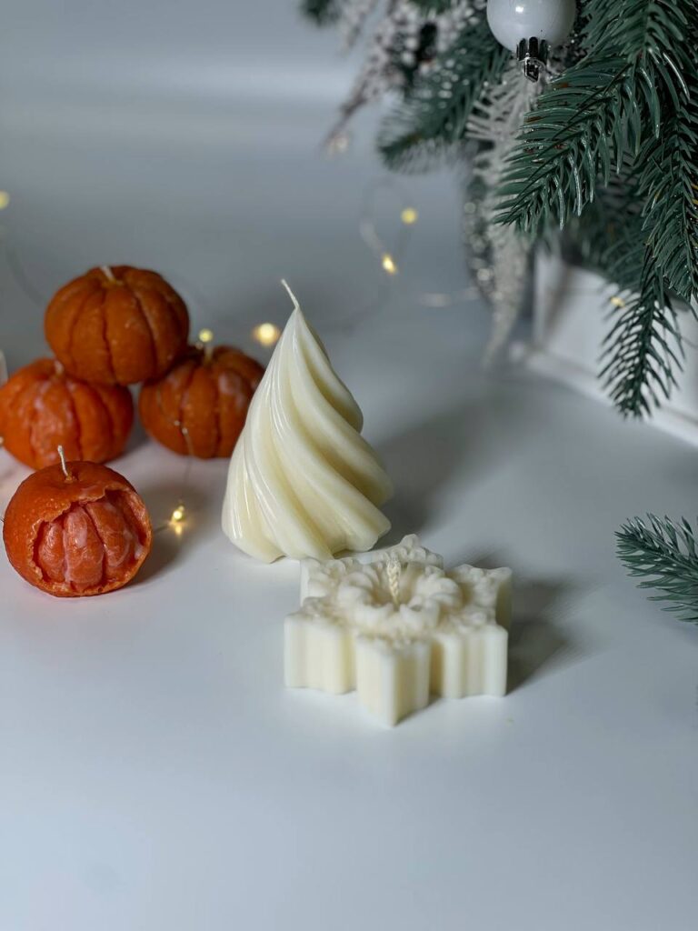 Свічка «Сніжинка» — витончена зимова прикраса та джерело тепла. Виготовлена вручну з натурального соєвого воску, вона має форму сніжинки з тонким орнаментом. Бавовняний ґніт забезпечує чисте горіння, а ніжний аромат нагадає про затишок зимових свят. Ідеально підходить для новорічного декору чи подарунка, а також чудово доповнює святкові набори свічок. Кожна сніжинка вже в святковому пакуванні
